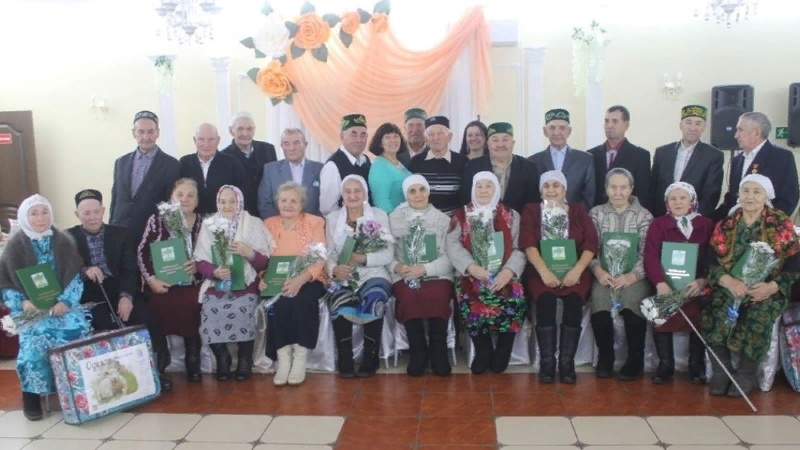 На мероприятие были приглашены супруги, прожившие в браке 50, 55 и 60 лет. Это «бриллиантовые» юбиляры: супруги Люция и Рифкать Гирфановы из села Большие Кайбицы, «изумрудные» юбиляры супружеской жизни –Альберт и Сагира Ярхамовы из Больших Кайбиц, а так же «золотые» юбиляры Фрат и Зиля Фаттаховы, Хади и Васиха Сунгатуллины из Больших Кайбиц, Ильшат и Сания Галиуллины, Назим и Амина Файзрахмановы из Старых Чечкаб.