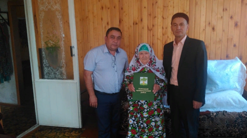 В честь юбилея от имени Главы Кайбицкого муниципального района Альберта Ильгизаровича Рахматуллина именинницу поздравили заместиль Главы района Хаялиев Рамис Рафисович и руководитель Исполнительного комитета Большекайбицкого сельского поселения Сафин Рамис Багдетдинович, пожелали ей крепкого здоровья, долгих лет жизни.