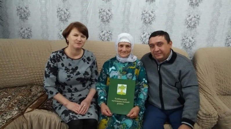 В честь юбилея от имени Главы Кайбицкого муниципального района Альберта Ильгизаровича Рахматуллина именинницу поздравили управляющий делами Исполнительного комитета Кайбицкого муниципального района Бадертдинова Дания Акраметдиновна, руководитель Исполнительного комитета Большекайбицкого сельского поселения Сафин Рамис Багдетдинович, пожелали ей долгой и счастливой жизни, крепкого здоровья, прекрасного самочувствия, замечательного настроения.