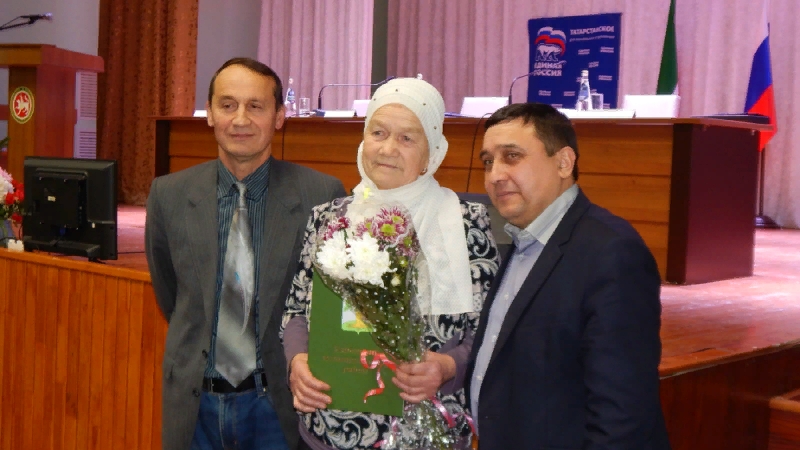 Аны шушы гүзәл бәйрәме белән Кайбыч муниципаль районы башлыгы Рəхматуллин Альберт Илгизəр улы исеменнəн Кайбыч муниципаль районы башлыгы урынбасары Хәялиев Рәмис Рәфис улы һәм Олы Кайбыч авыл җирлеге Башкарма комитеты җитəкчесе Сафин Рəмис Бəгдетдин улы тəбриклəделəр. Аңа ныклы сәламәтлек, озын гомер, бәхет теләделəр.